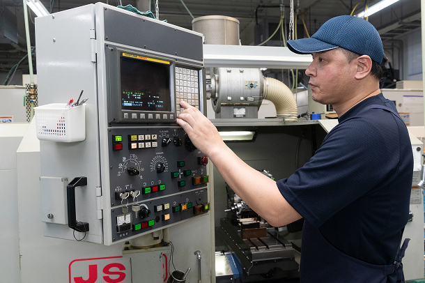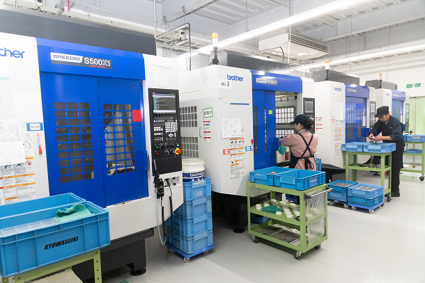 加工現場においては、だれもが段取をこなし、自分の段取した部品を自分で加工する事が基本です。 品質を維持する最適任者が加工する事で、高い品質管理体制を維持する事が出来る仕組みです。 この体制は、少量生産をより効率的に作業できる環境を作っています。